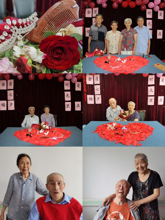 “七夕”是中国传统节日中最具浪漫色彩的节日,因牛郎、织女在七月初七相会的传说而被认为是“中国的情人节”。在七夕节来临之际,为了弘扬中国传统文化,讴歌美丽爱情、幸福生活,福虞养老·古里护理院精心策划并组织开展了“金婚逢七夕,爱在时光里”主题活动,邀请院内10对金婚夫妻相聚一堂,浪漫过七夕,金婚晒幸福。