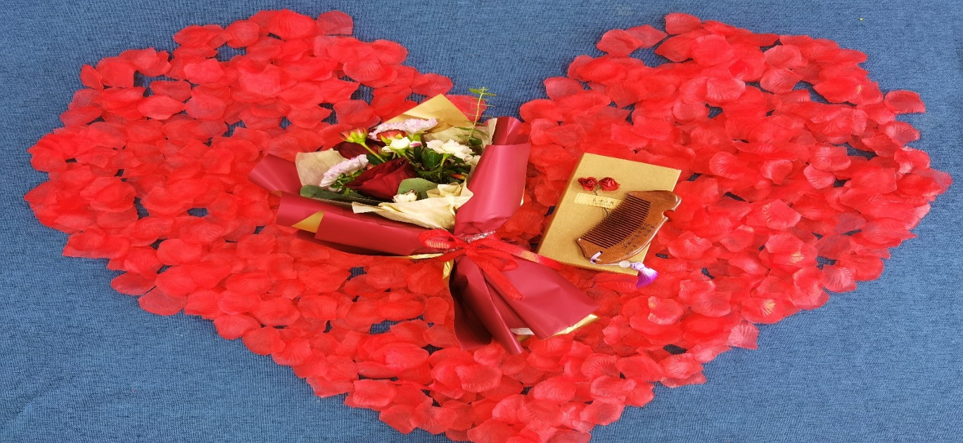 有古诗“接发同心,以梳为礼”。一把梳子,一段爱情,一次回忆,守护爱一生。红色玫瑰、粉色康乃馨、鲜艳的花瓣、五彩的气球,还有日用小礼品,我们能想到的美好与浪漫尽在其中。